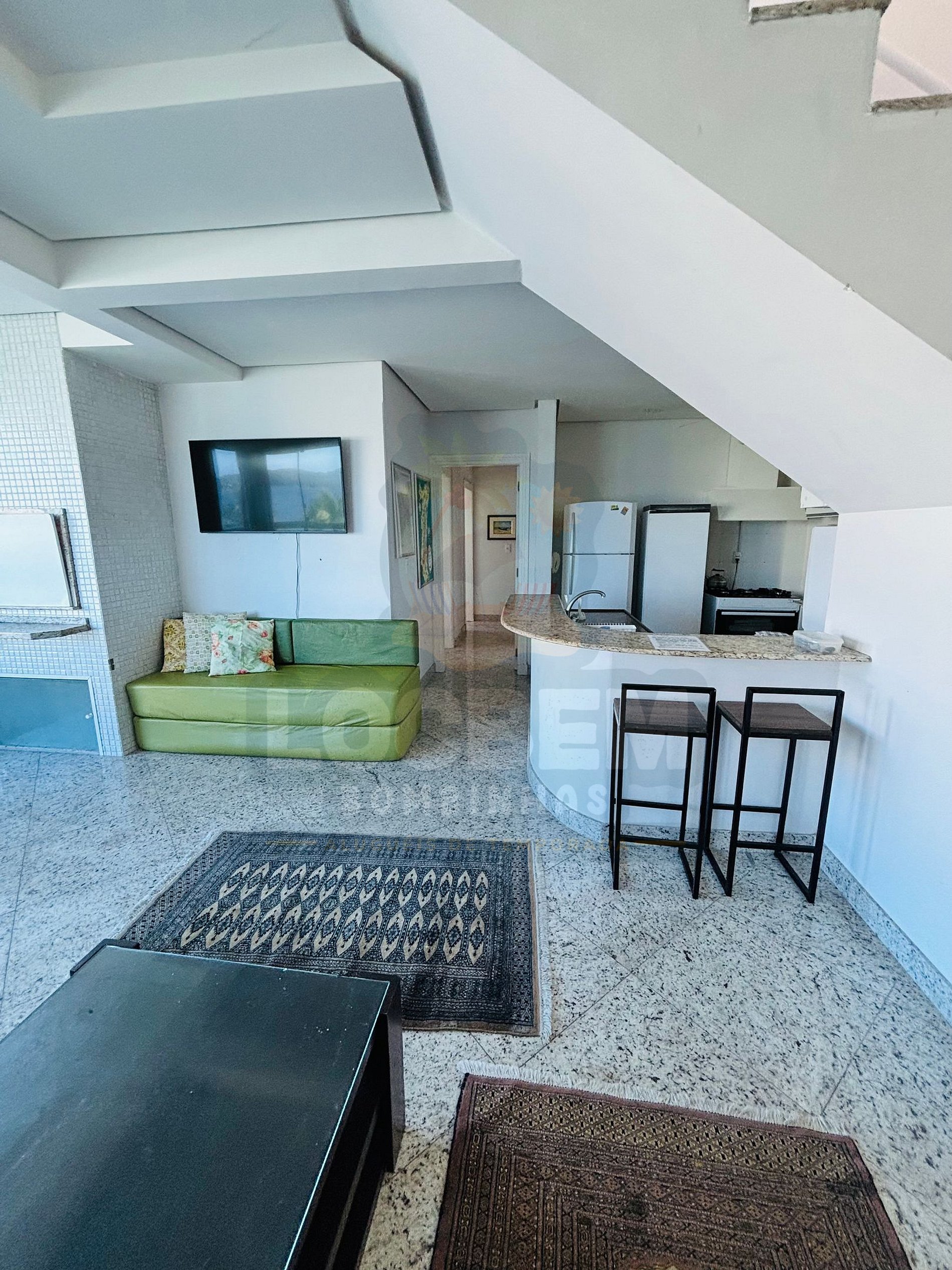 Sala e cozinha integradas, proporcionando um ambiente amplo e acolhedor