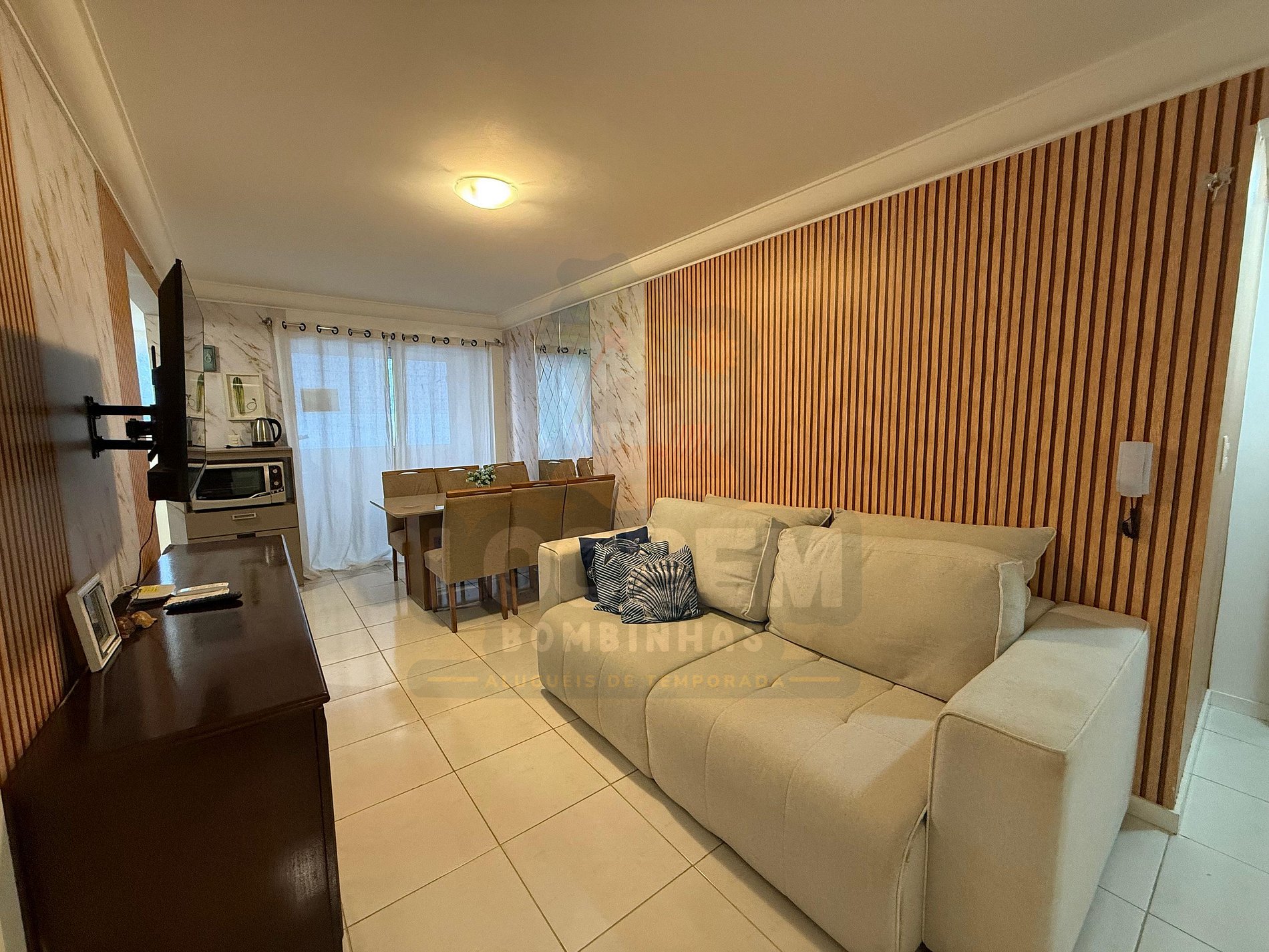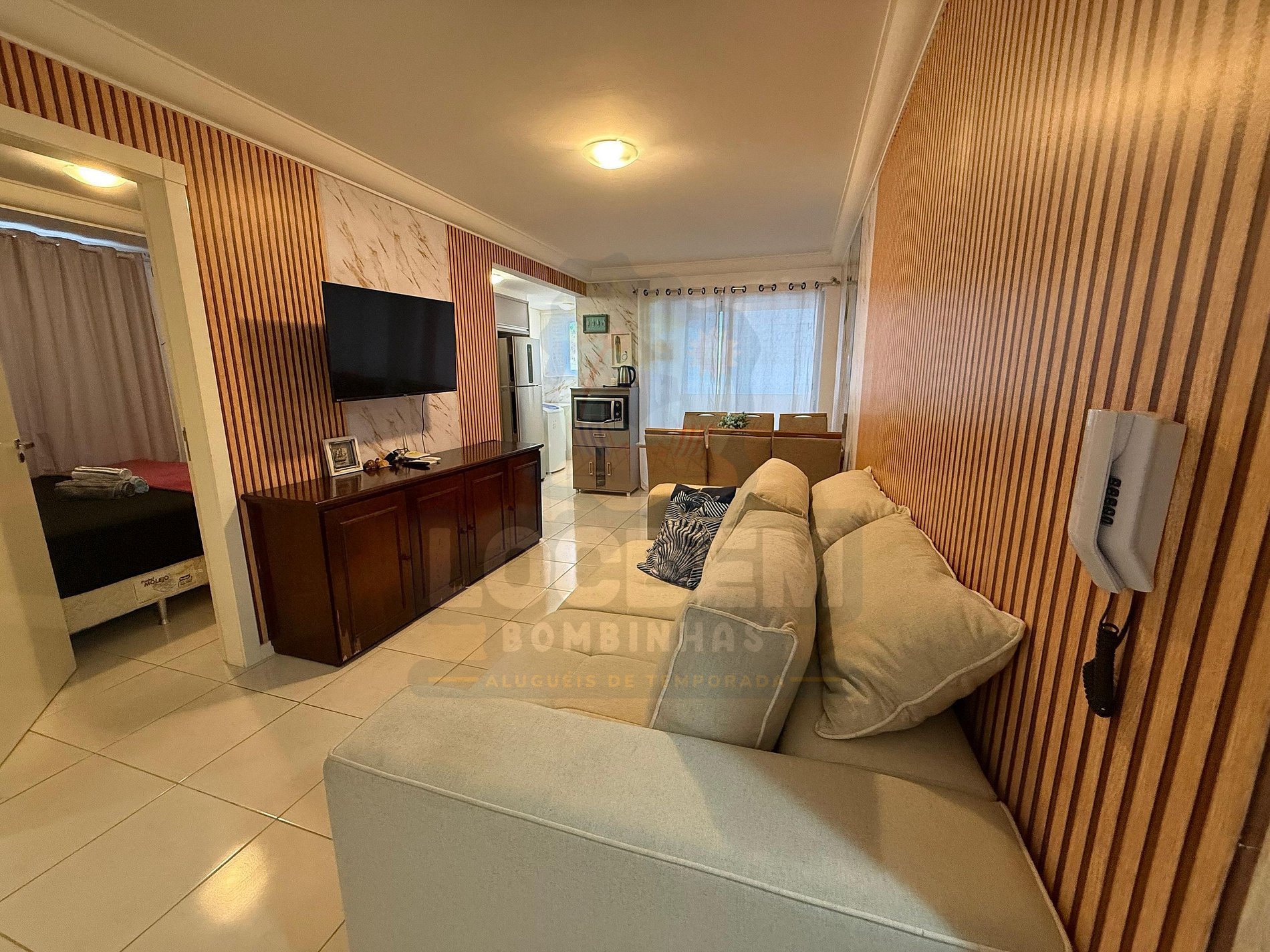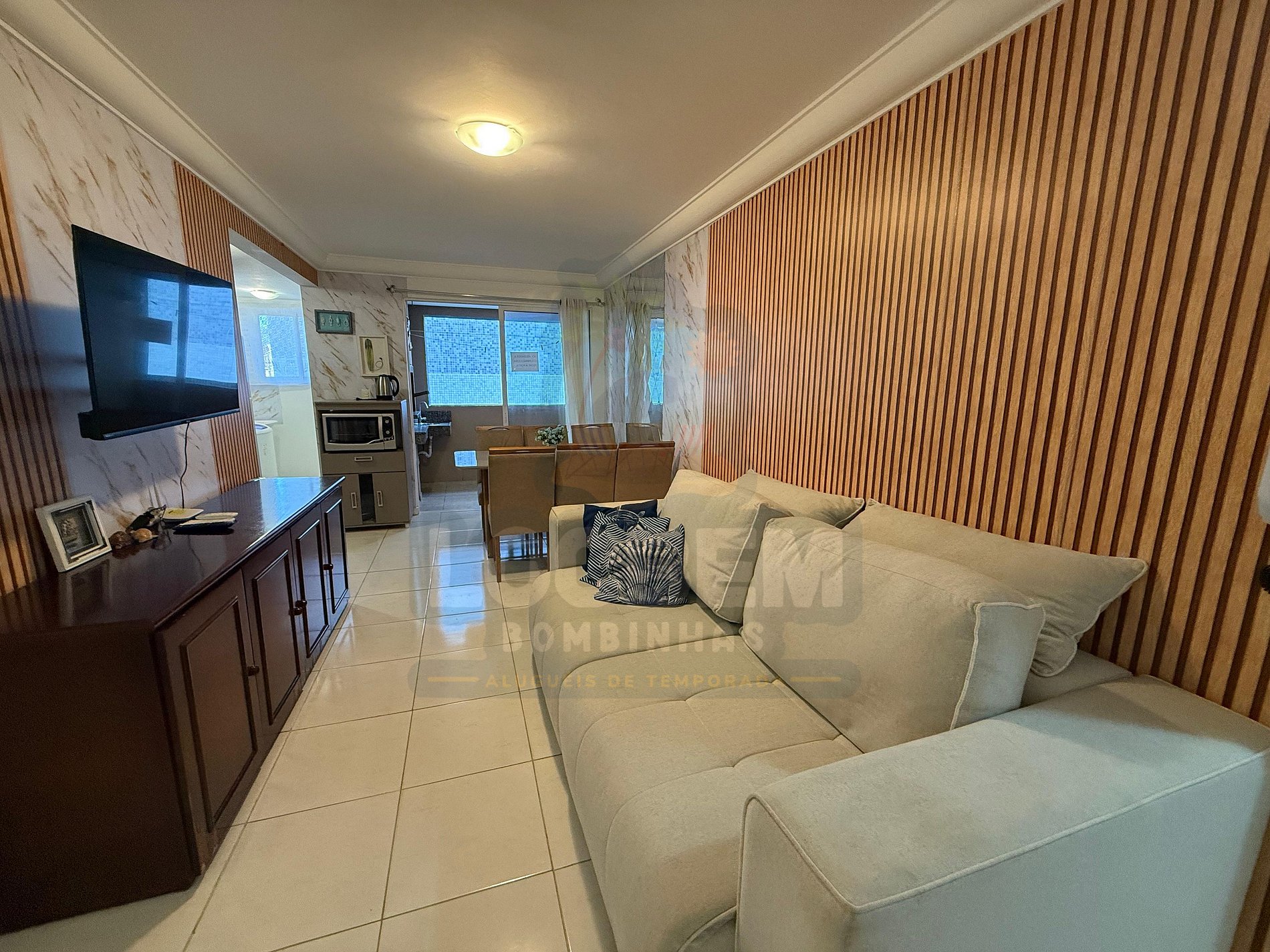 Localizado a apenas 200 metros da Praia de Bombas, este apartamento oferece a combinação ideal entre conforto, praticidade e ótima localização. Com dois quartos (sendo uma suíte com TV) e ar-condicionado nos dormitórios, acomoda com conforto até seis pessoas, incluindo sofá-cama na sala.