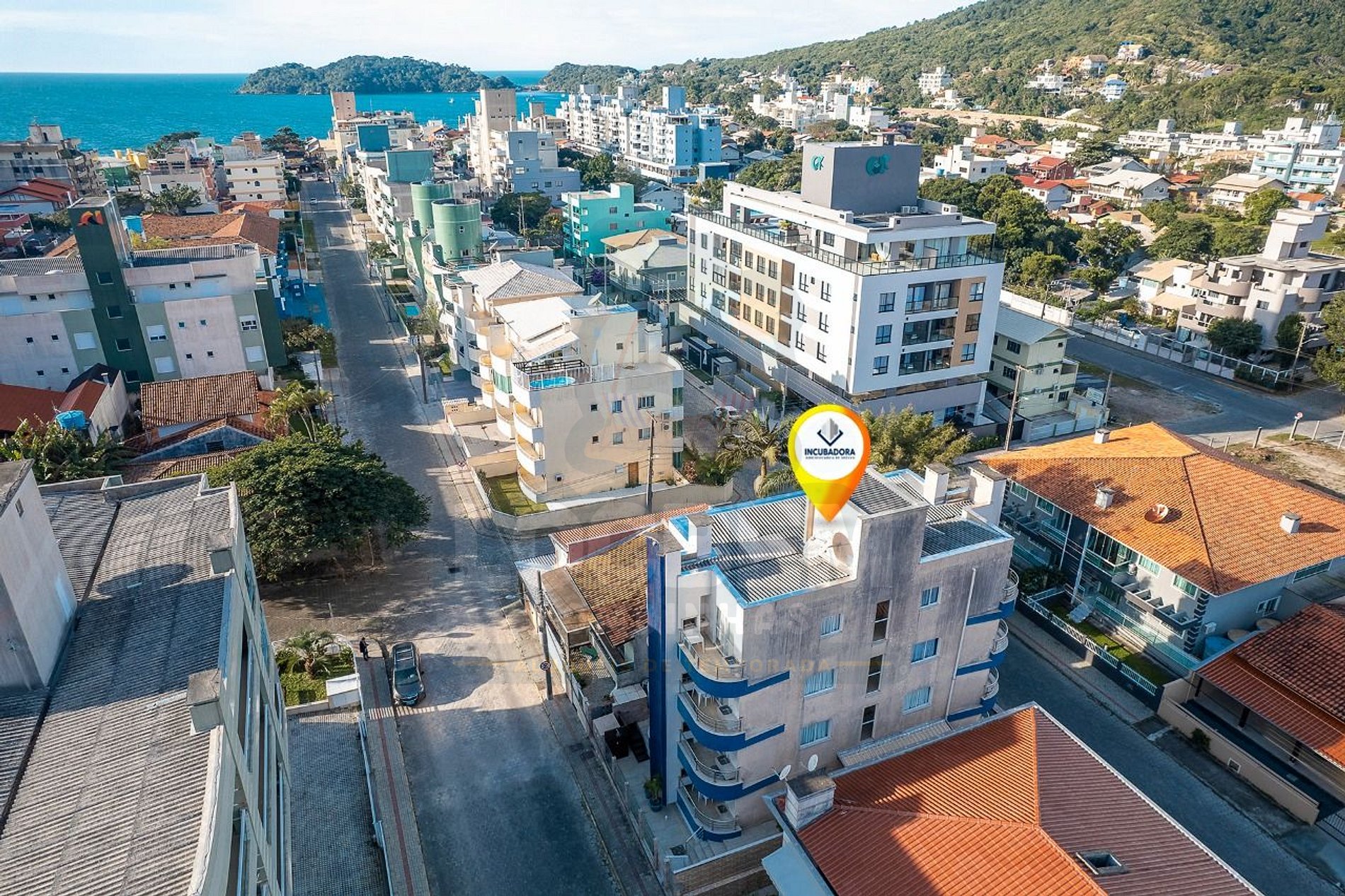 O residencial fica no Centro de Bombinhas, aproximadamente a 250m da Avenida principal de Bombinhas